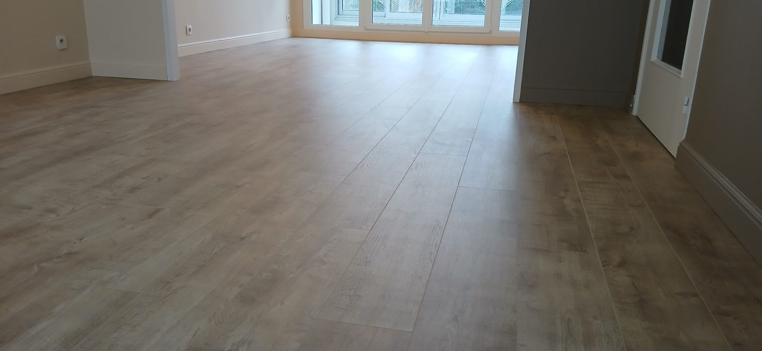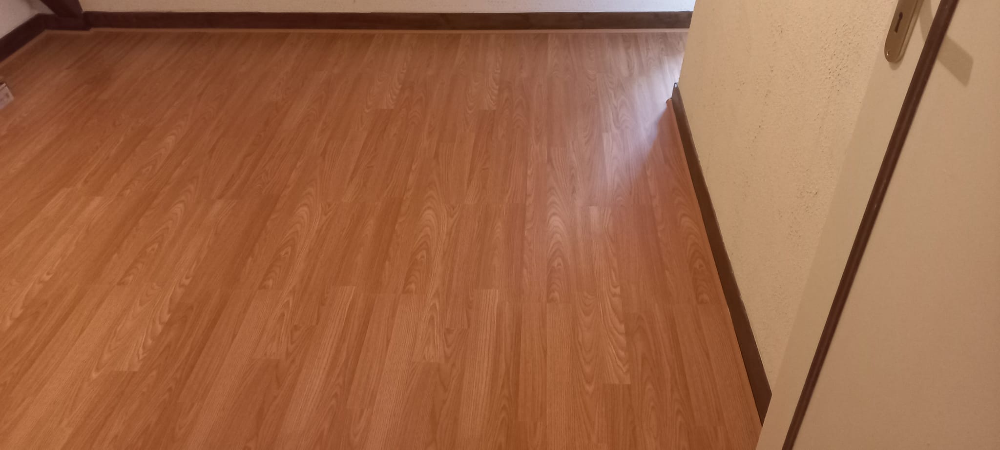 Changement de sol dans une chambre Dépose du lino au préalable et pose d’un stratifié