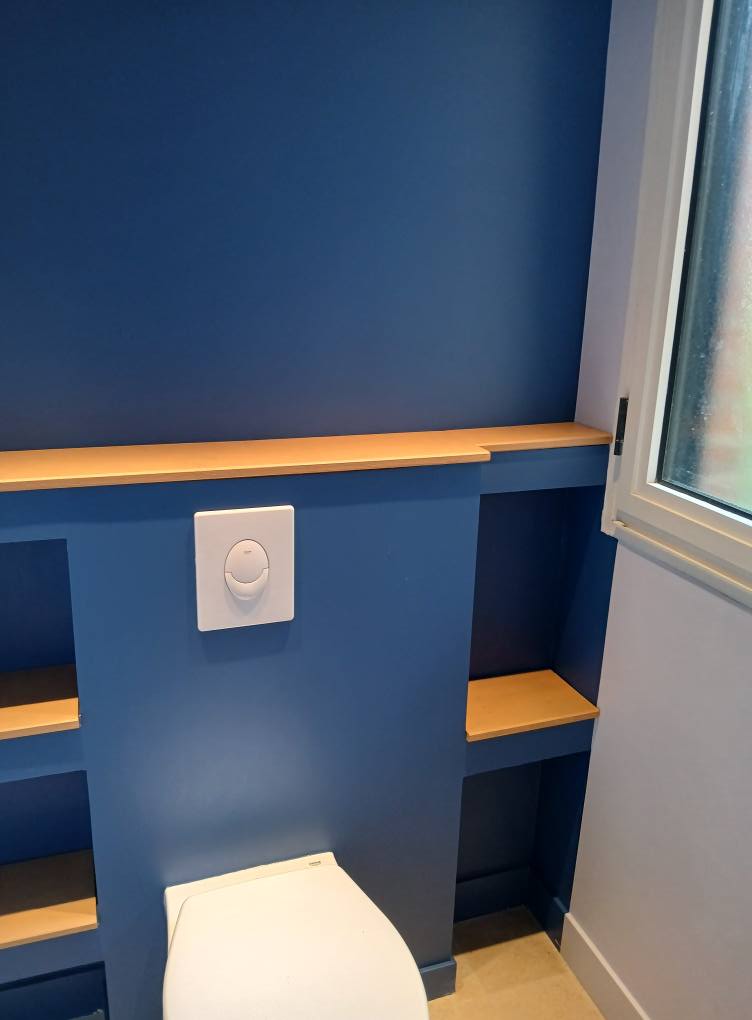 Sur ce chantier, j’ai repris l’ensemble de la pièce pour lui redonner une finition saine, durable et cohérente.